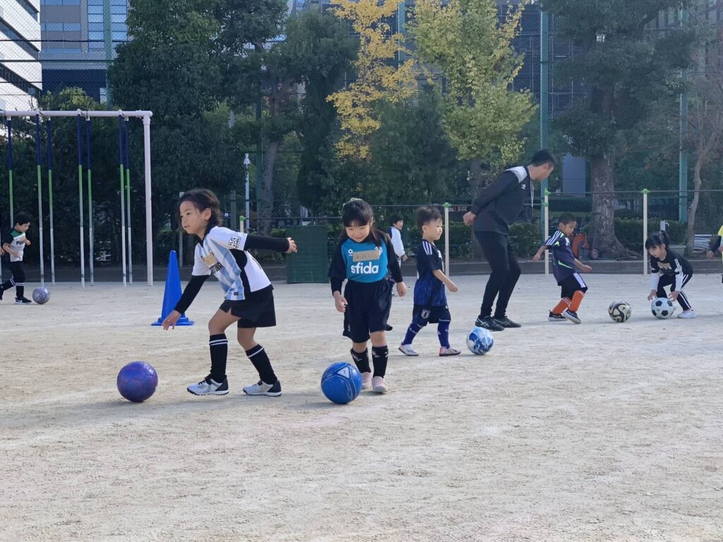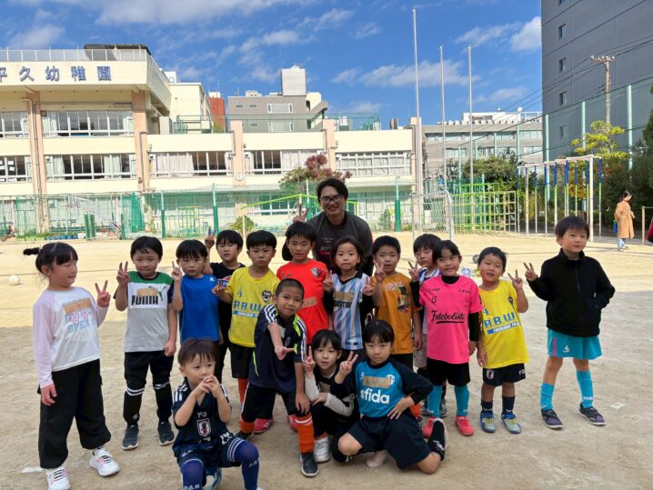 サッカーが初めてで転んでしまう場面もありましたが、どの子もニコニコ笑顔で、楽しい時間を過ごせたように感じています。